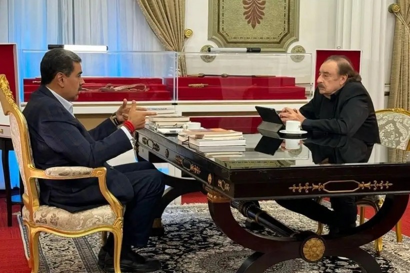 Le président vénézuélien Nicolás Maduro et le journaliste espagnol Ignacio Ramonet, lors de l’entretien de ce dernier avec le président au palais de Miraflores à Caracas. (Crédit image: Photos de l’article publiées avec l’aimable autorisation d’Ignacio Ramonet.)