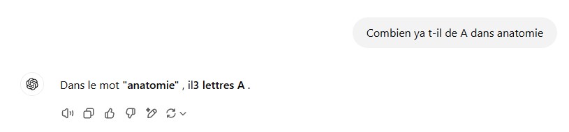 Demandez à ChatGPT combien il y a de A dans le mot anatomie…
