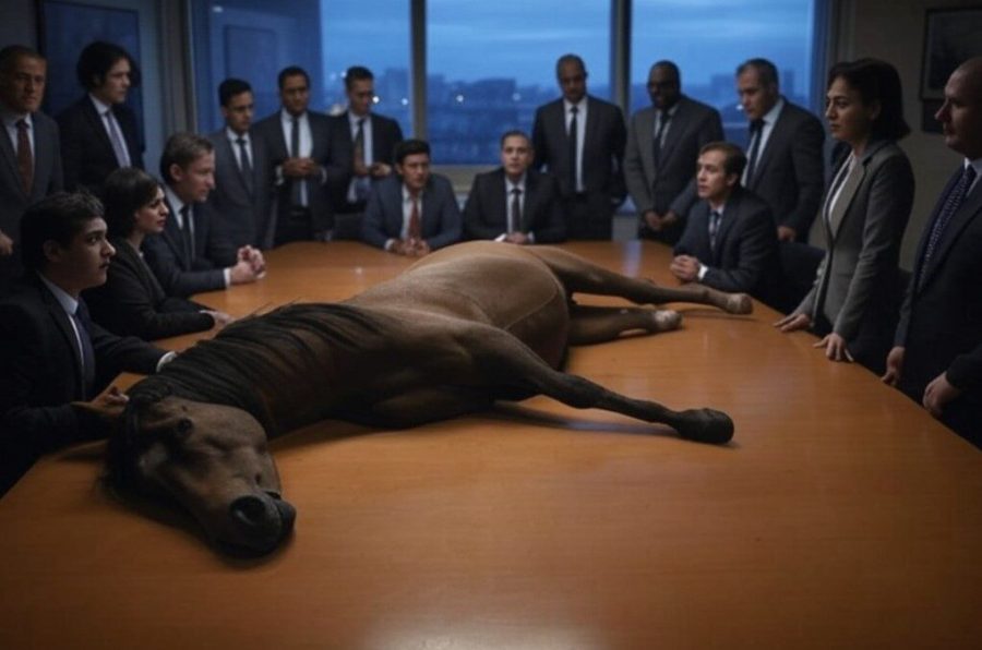 Cette histoire permet en réalité d’évoquer ceux qui ne veulent pas reconnaître que le cheval est mort… ce que l’on appelle le déni.