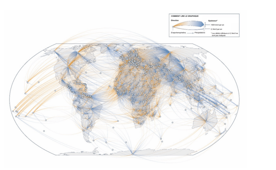 Figure 1. Connexions entre pays par l’humidité atmosphérique terrestre globale (Global Commission on the Economics of Water, 2024)