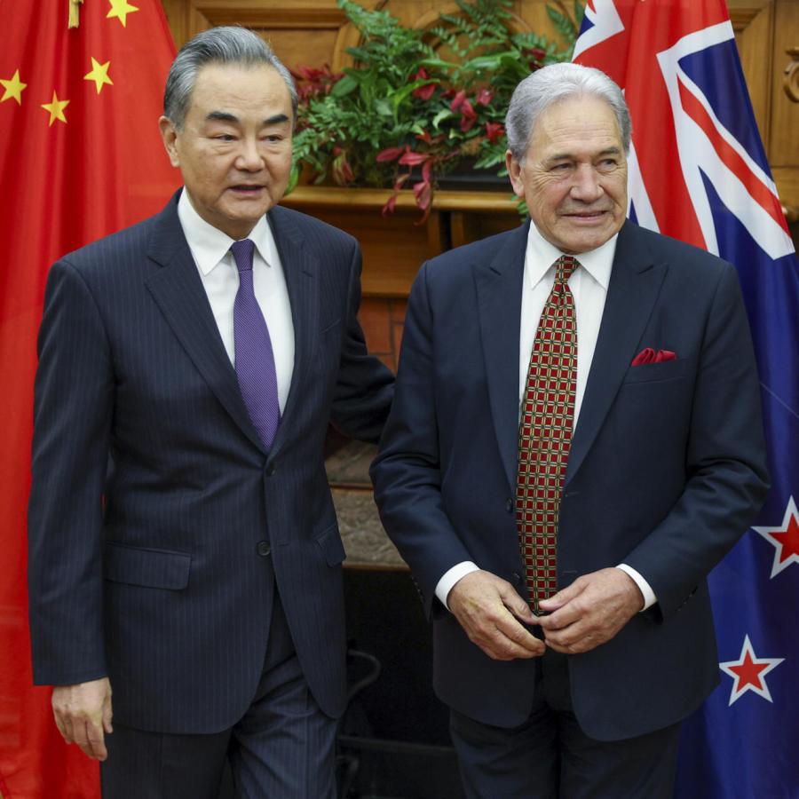le ministre des Affaires étrangères Wang Yi et le vice-Premier ministre Winston Peters