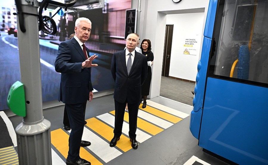 Lors de la visite avec le maire de Moscou, Sergei Sobyanin et la secrétaire d’État – ministre adjoint de la Défense et présidente des défenseurs de la Fondation de la Patrie Anna Tsivileva. Photo: Mikhail Metzel, tass