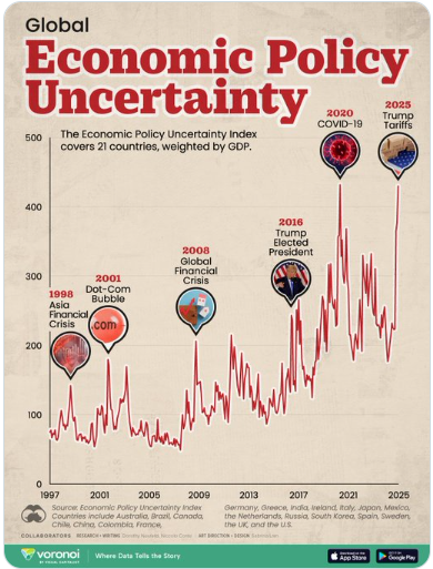 L’incertitude mondiale atteint des sommets presque similaires à ceux de la crise COVID à 429,8 à quelques “pouièmes” du record historique de mai 2020 pendant la pandémie de coronavirus.
