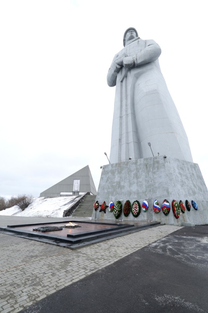 Le voyage de travail de Vladimir Poutine à Murmansk a commencé par une visite au Mémorial des Défenseurs de l’Arctique où le président a posé des fleurs au monument soviétique de la grande guerre patriotique.