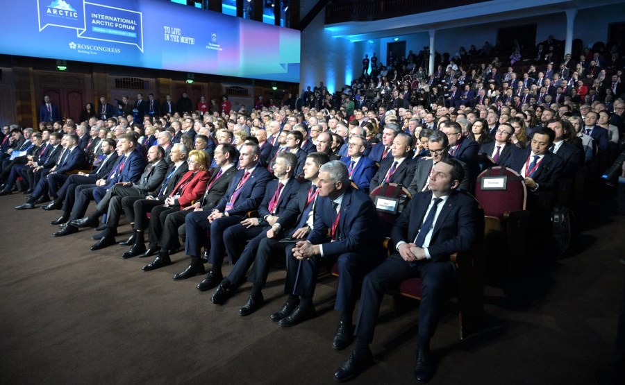 Des membres de la réunion sur le développement de la zone arctique de la Fédération de Russie et du couloir des transports arctiques. Photo: Alexei Nikolskiy, Ria Novosti