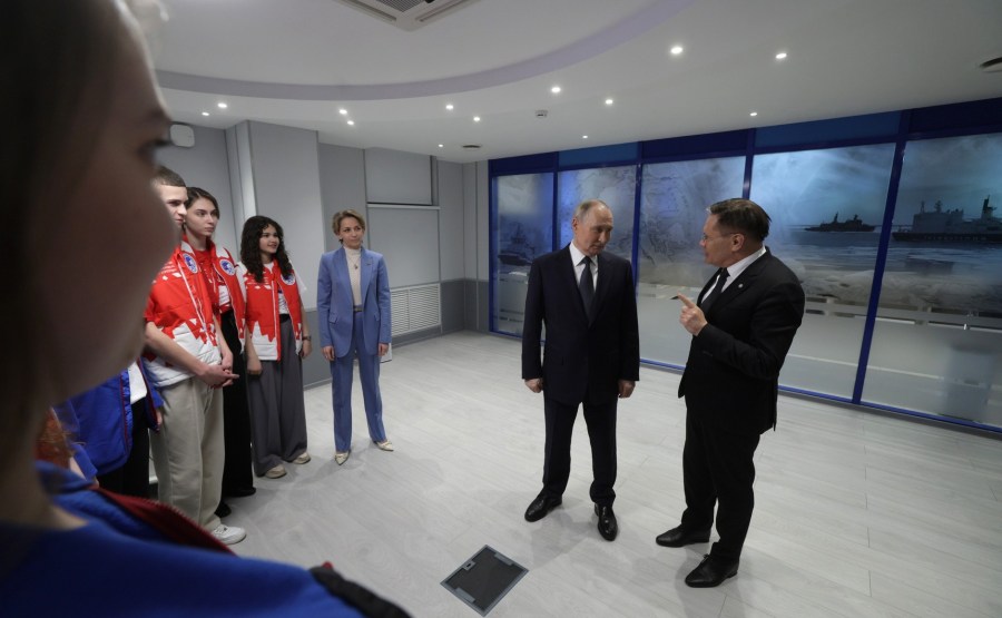 Au cours de sa visite au siège des opérations maritimes d’Atomflot, Vladimir Poutine s’est entretenu avec les participants des brise-glaces de Knowledge, un programme Rosatom pour la recherche pour enfants et les expéditions éducatives au pôle Nord.