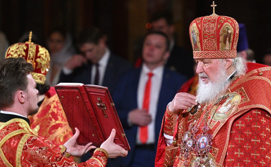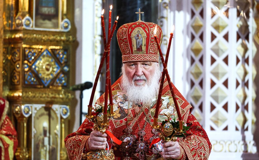Le patriarche Kirill de Moscou et toute la Russie mène une liturgie pendant les vacances de la résurrection du Christ. Photo de Ramil Sitdikov, Ria Novosti