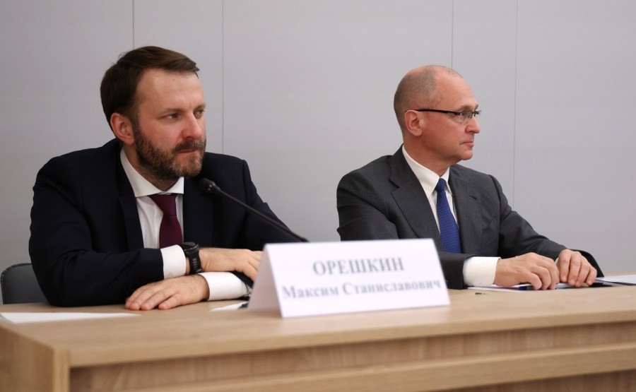 Le chef d’état-major du bureau exécutif présidentiel Maxim Oreshkin et le premier chef d’état-major adjoint du bureau exécutif présidentiel Sergei Kiriyenko à la réunion avec les chefs des municipalités.