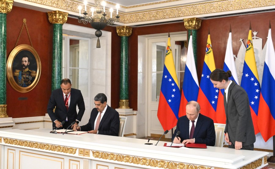 Vladimir Poutine et Nicolas Maduro ont signé le traité entre la Fédération de Russie et la République bolivarienne du Venezuela sur le partenariat stratégique et la coopération. Photo: Alexei Danichev, Ria Novosti