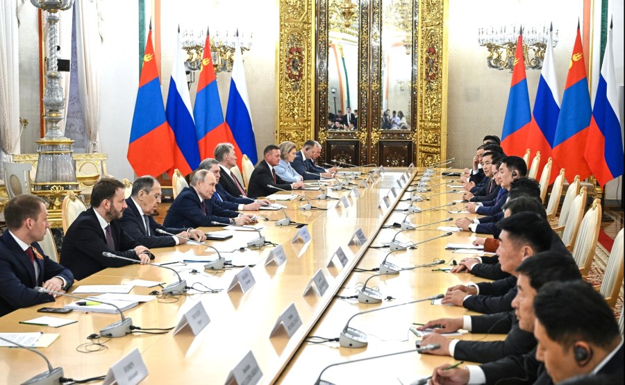 Réunion avec le président de la Mongolie Ukhnaagiin Khurelsukh. Photo: Sergei Bobylev, Ria Novosti