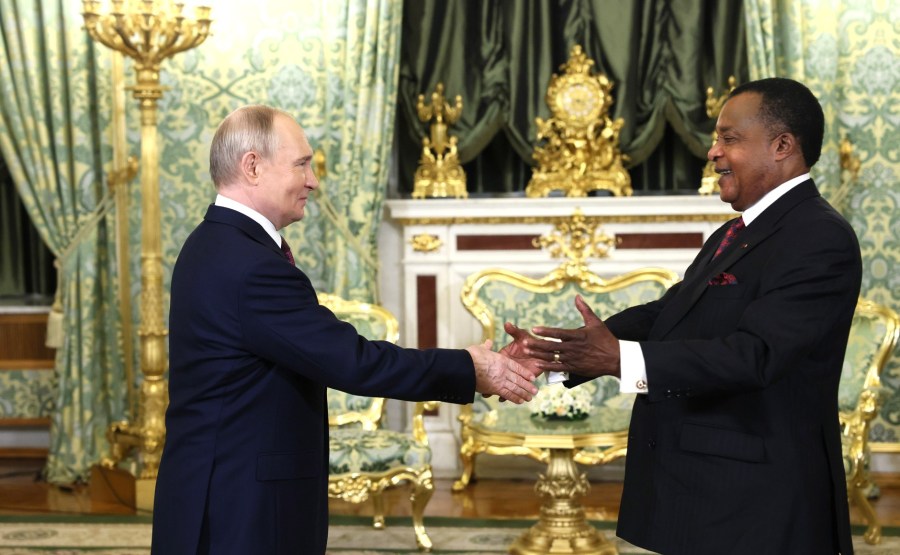 Le Président a accueilli au Kremlin le Président de la République du Congo, Denis Sassou Nguesso, arrivé à Moscou pour assister aux cérémonies solennelles consacrées au 80e anniversaire de la Victoire dans la Grande Guerre patriotique.