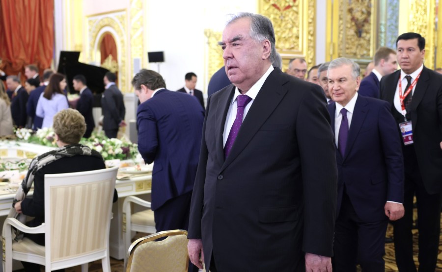 Président de la République du Tadjikistan Emomali Rahmon avant le dîner organisé au nom du président de la Russie pour les chefs de délégations étrangères et d’invités honoraires qui sont venus à Moscou pour les célébrations du 80e anniversaire de la victoire dans la grande guerre patriotique de 1941 à 1945.