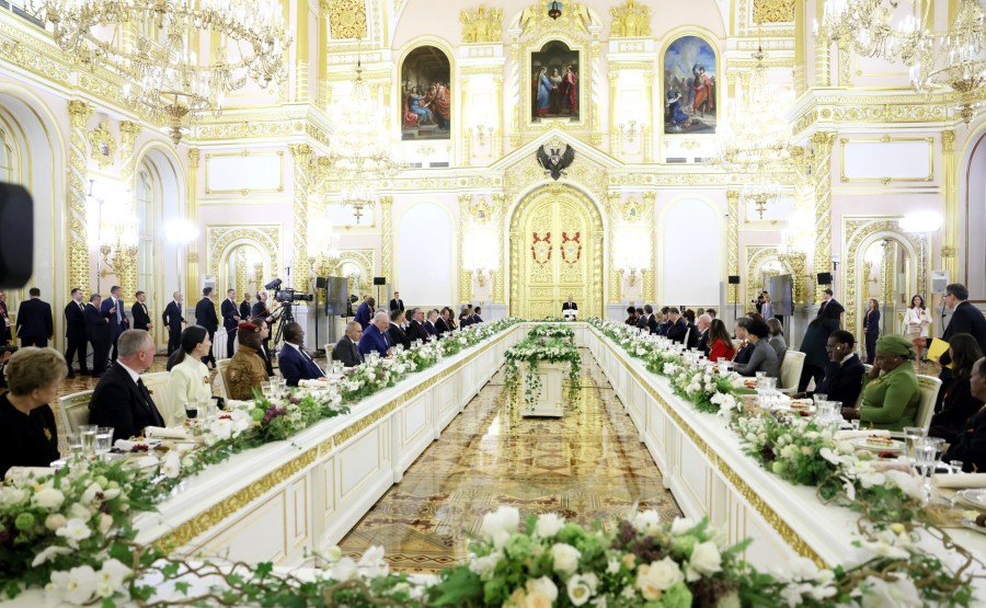 Lors du dîner organisé au nom du président de la Russie pour les chefs de délégations étrangères et d’invités honoraires qui sont venus à Moscou pour les célébrations du 80e anniversaire de la victoire dans la grande guerre patriotique de 1941-1945. Photo d’Alexandr Kryazhev, Ria Novosti