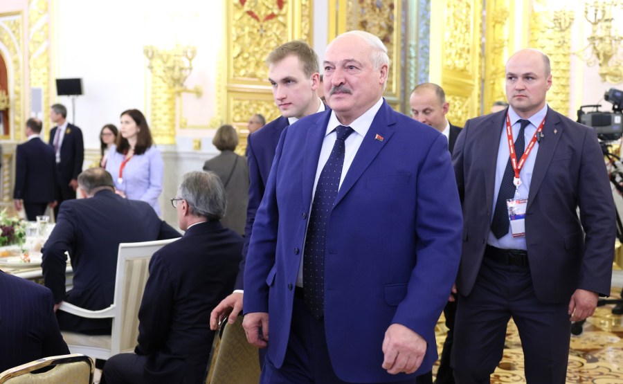 Président du Bélarus Alexander Lukashenko avant le dîner organisé au nom du président de la Russie pour les chefs de délégations étrangères et les invités honoraires qui sont venus à Moscou pour les célébrations du 80e anniversaire de la victoire dans la grande guerre patriotique de 1941-1945.