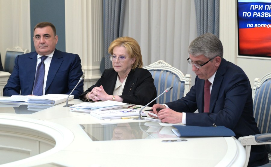 La vice-première ministre Tatiana Golikova et la commissaire présidentielle aux droits de l’enfant Maria Lvova-Belova étaient également présentes à la réunion.
