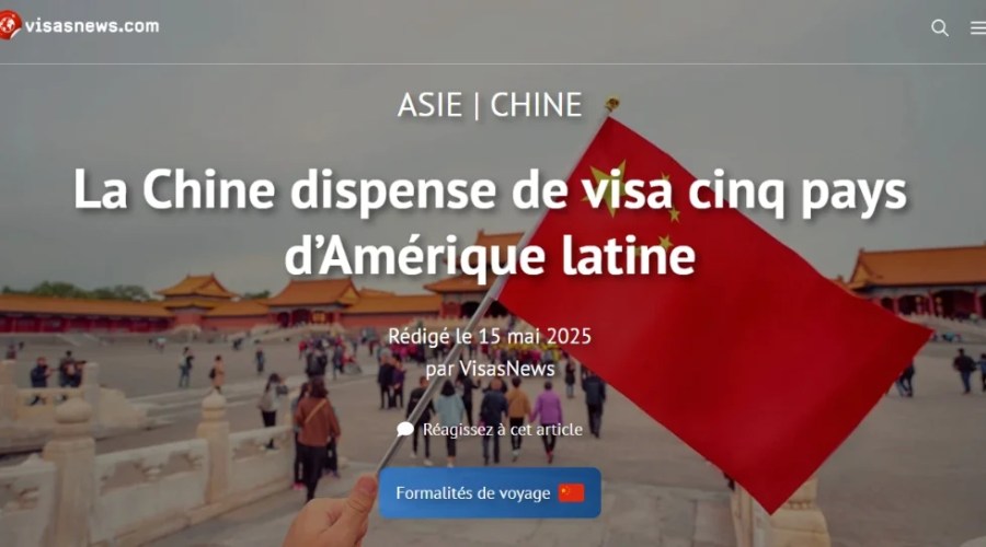à partir du 1er juin, exemption de visa pour les détenteurs de passeports ordinaires du Brésil, de l’Argentine, du Chili, du Pérou et de l’Uruguay.