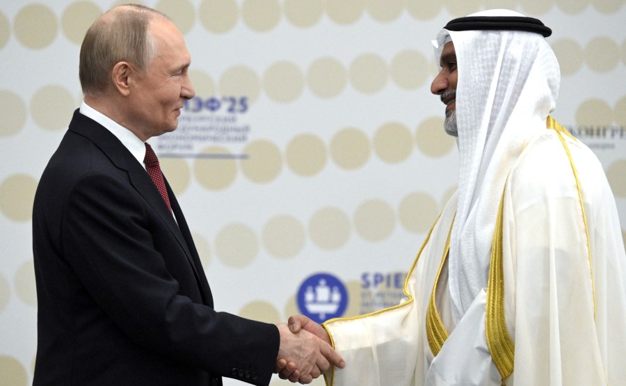 Vladimir Poutine a rencontré le secrétaire général de l’OPEP, Haitham Al Ghais, en marge du Forum économique international de Saint-Pétersbourg.