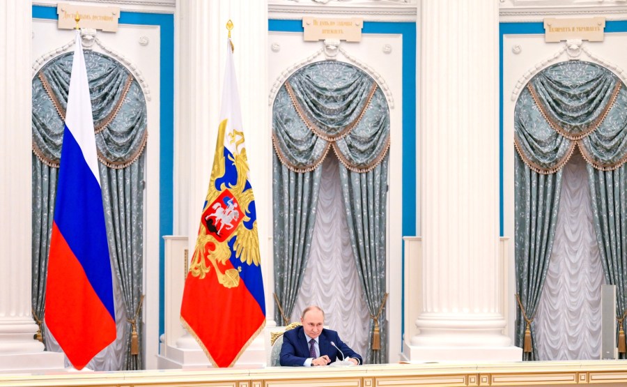 Vladimir Poutine a tenu une réunion par visioconférence sur le développement socio-économique des nouvelles régions russes : les républiques populaires de Donetsk, de Lougansk, et les régions de Zaporojie et de Kherson.