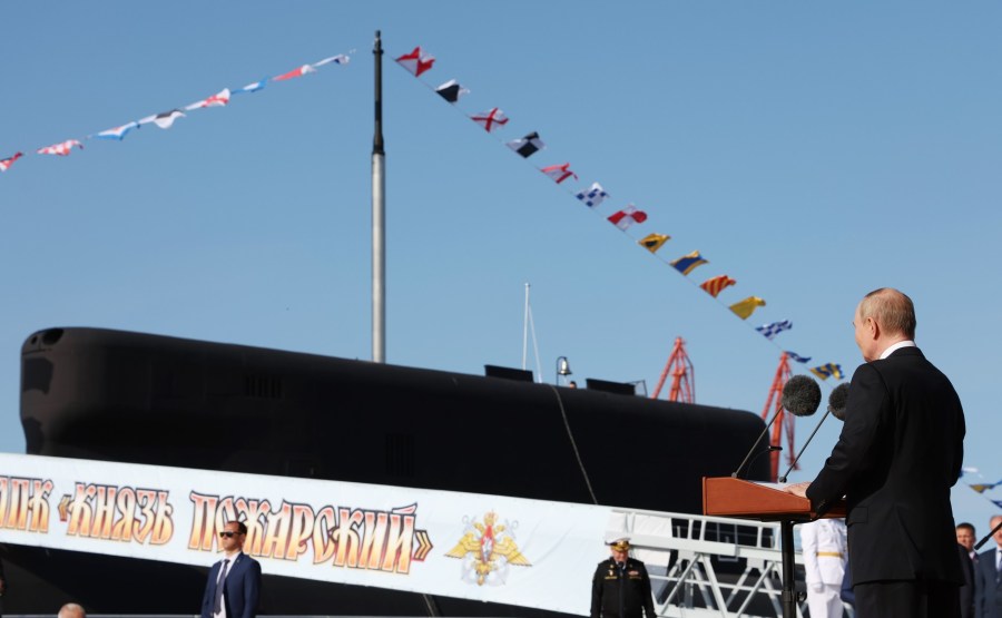 Aujourd’hui, ici à Severodvinsk, l’un des principaux centres de construction navale de Russie, nous hissons le drapeau naval sur le croiseur sous-marin stratégique Knyaz Pojarski et le mettons officiellement en service dans la marine russe. Je félicite sincèrement les constructeurs navals et les marins pour cet événement important et historique.