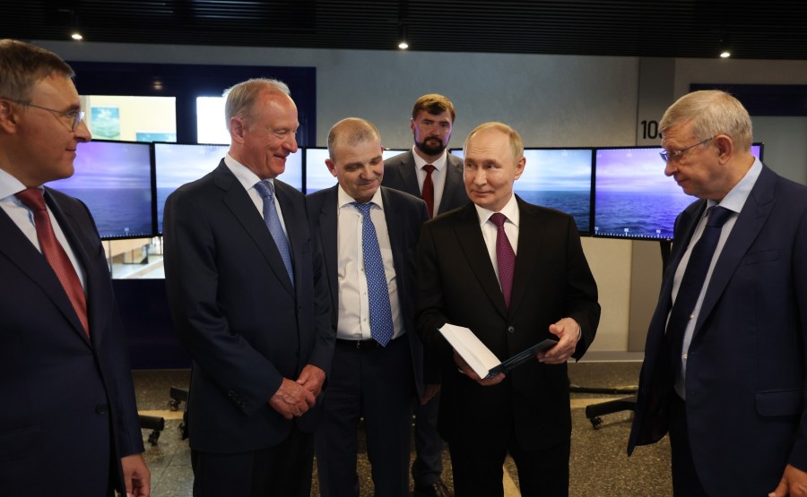 Aide présidentielle Nikolai Patrushev lors de la visite à l’Université technique marine de St Petersburg.