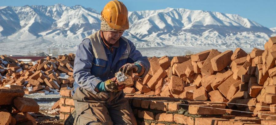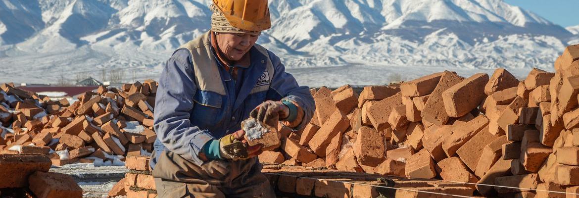 Dépourvus d’accès à la mer, les pays enclavés doivent compter sur d’autres nations pour leurs importations et leurs exportations. Sur cette photo, une femme construit une maison en Mongolie.