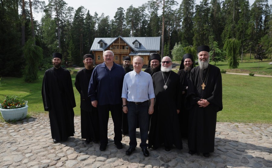 Monsieur Poutine, vous avez bien dit. En arrivant par avion, je me suis dit que nous avions créé une belle tradition : deux nations orthodoxes – et nous, leurs représentants – nous réunissions ici chaque année, dans cette église où nous nous sentons comme chez nous. En approchant, je me suis dit que la skite de Smolensk était très belle, mais qu’il n’y avait pas de skite biélorusse ici.
