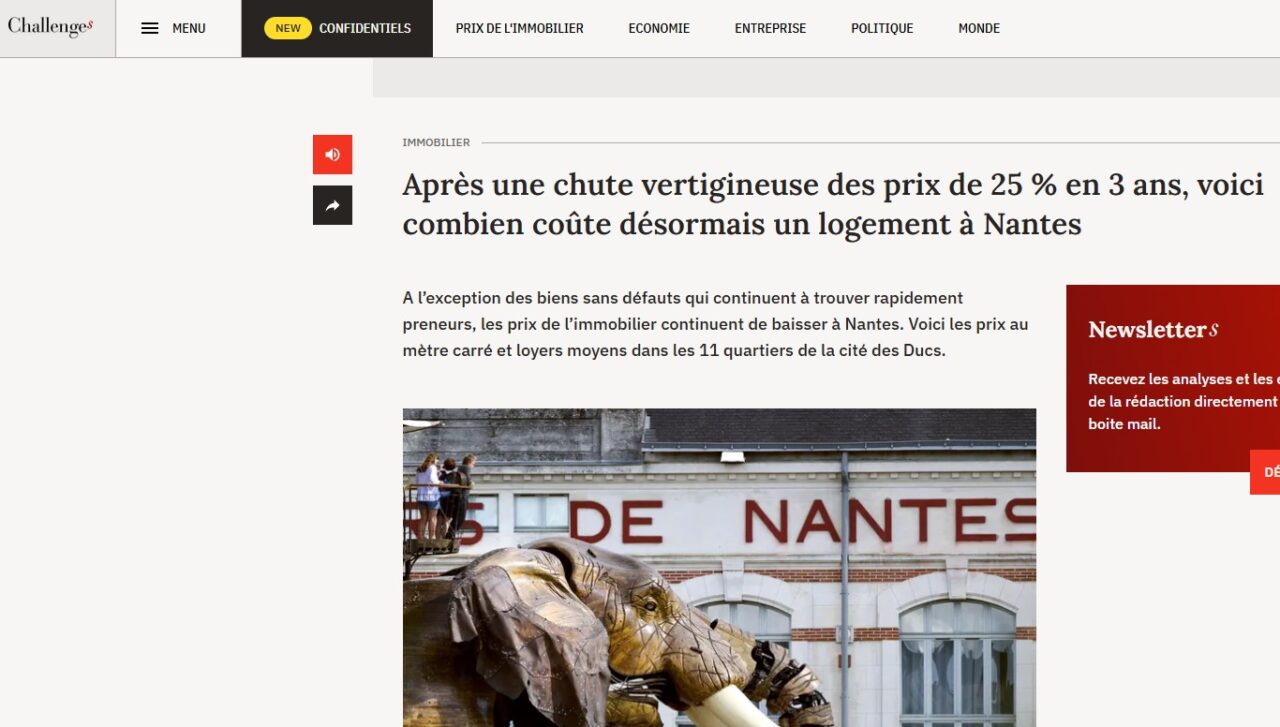 Le Magazine Challenges impressionné par la baisse des prix à Nantes de 25 % !