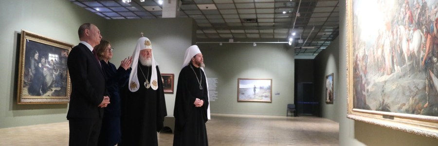 Visite de la galerie Tretiakov – 12 juin 2021 Vladimir Poutine a visité la Galerie Tretiakov sur Krymsky Val à Moscou. 12 juin 2021 – 16h40 – Moscou Visite de la galerie Tretiakov. Avec le directeur général de la Galerie nationale Tretiakov Zelfira Tregulova et Tikhon, métropolite de Pskov et Porkhov, président du Conseil du… Lire la suite 4393 – Moscou – Visite de la galerie Tretiakov – 12 juin 2021